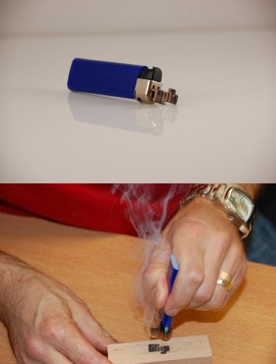 You type in your text or send Shapeways a link to a logo and they’ll model and 3D print a mini branding iron for you. The branding iron clicks onto standard disposable lighters. You simply turn the lighter on for 30 seconds until the branding iron is hot and then brand away. A text branding iron costs $25 including shipping. A logo BrandingIron costs $25, also including shipping. The branding irons work well on many surfaces such as wood and Shapeways is currently looking at testing out skin but have not been able to find a volunteer with nice enough arms.