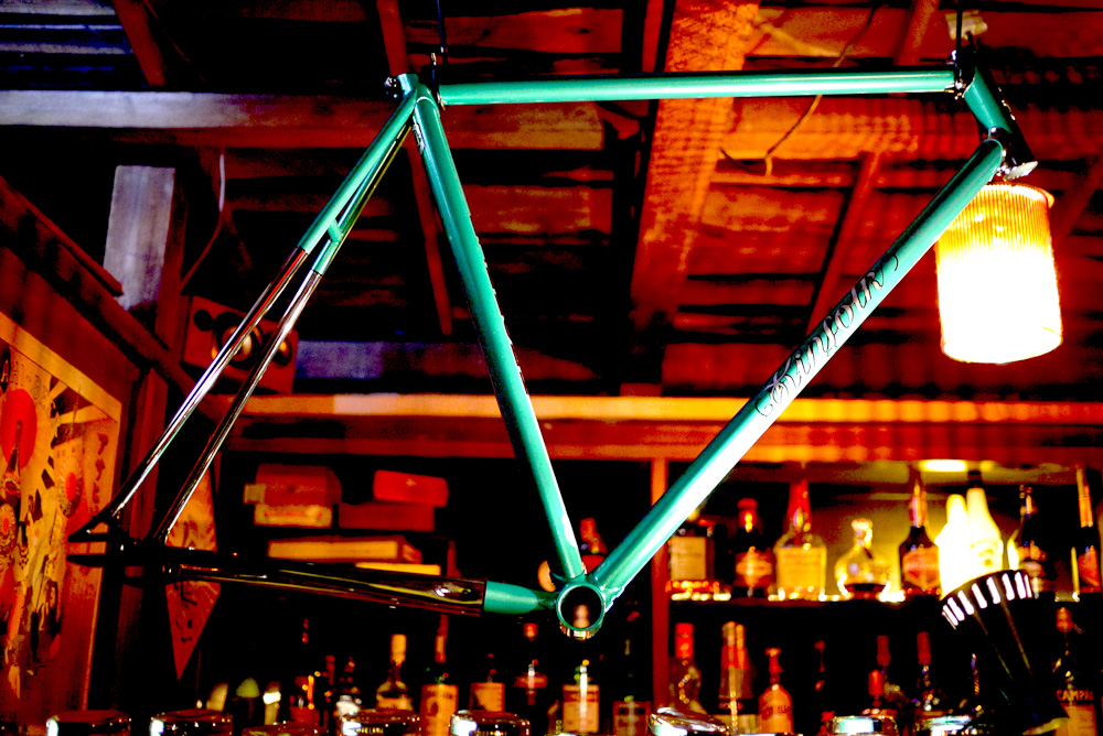 Just back from Tokyo to pick up my new frame, thanks to Dee, Ryan and JB for hooking this beautiful frame from Kinfolk, the color is a named “Dope Green with Crystal Flakes” and I can’t wait to build it up… Stay Tuned!