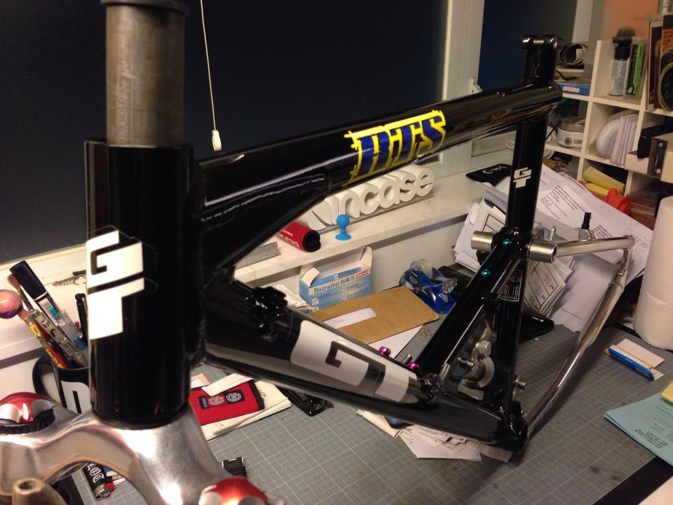 This morning I dropped off the front part of the frame at my friends garage to get repainted professionally, I could have done it myself but I am sure he’ll do a better job, plus he is not charging me much and it’ll probably cost me more to buy primer and paint, but I just need to wait for a matching black colour car to come in! Also got some original GT RTS frame decals, although not the Team ones they will do until I find the correct ones.