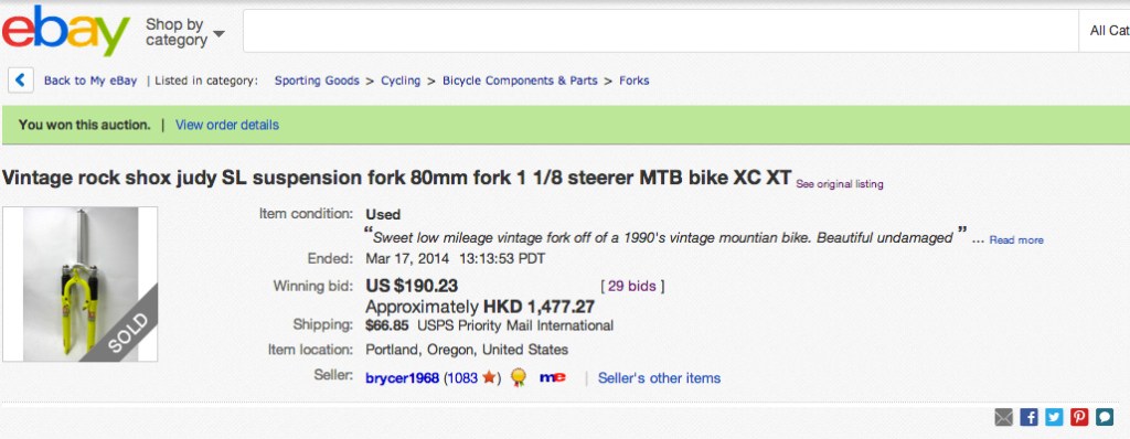 Spotted some Judy SL’s on ebay last night in very good condition and just had to have them, this would save me the time and effort to repaint the XC’s I have, find the correct decals and change all the hardware, damper and springs.. I worked out it would cost me a fair bit to rebuild so I thought I’d try my luck on ebay.. there was already a bidding war going on so I had to stay up till 4am and place my bid at the final seconds, I’m glad I did because it